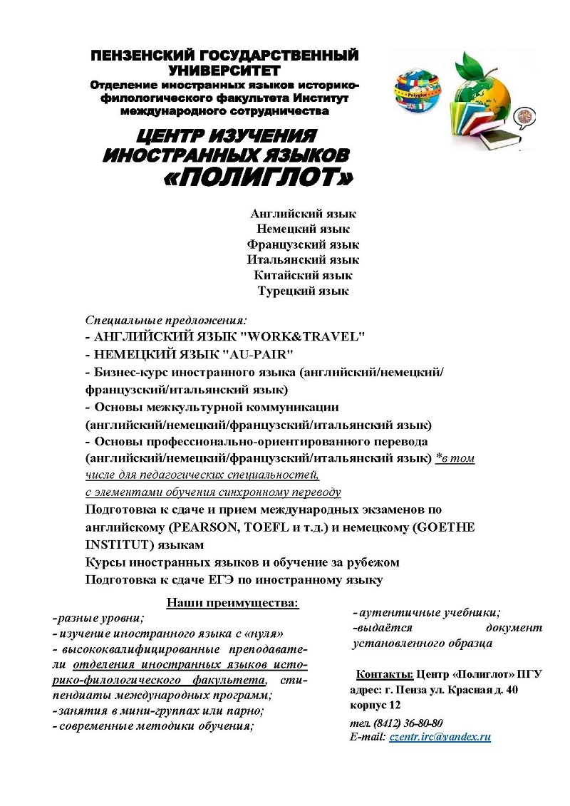 Центр изучения иностранных языков "Полиглот" приглашает на курсы!