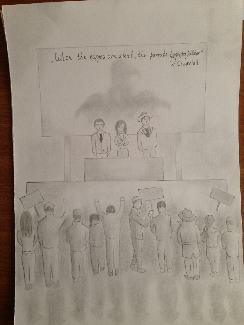 28 апреля подведены итоги конкурса иллюстраций к цитатам известных деятелей и писателей на английском языке. Участники продемонстрировали знание творчества известных писателей, политиков и других выдающихся деятелей англоговорящих стран. Победителями стали: Рыгалова Наталья (12 ИПА1), Орлова Татьяна (12 ИПА1), Широкова Юлия ( 12 ИПА1). Алёшина Е.Ю., Потылицина И.Г., Еремина Н.К.