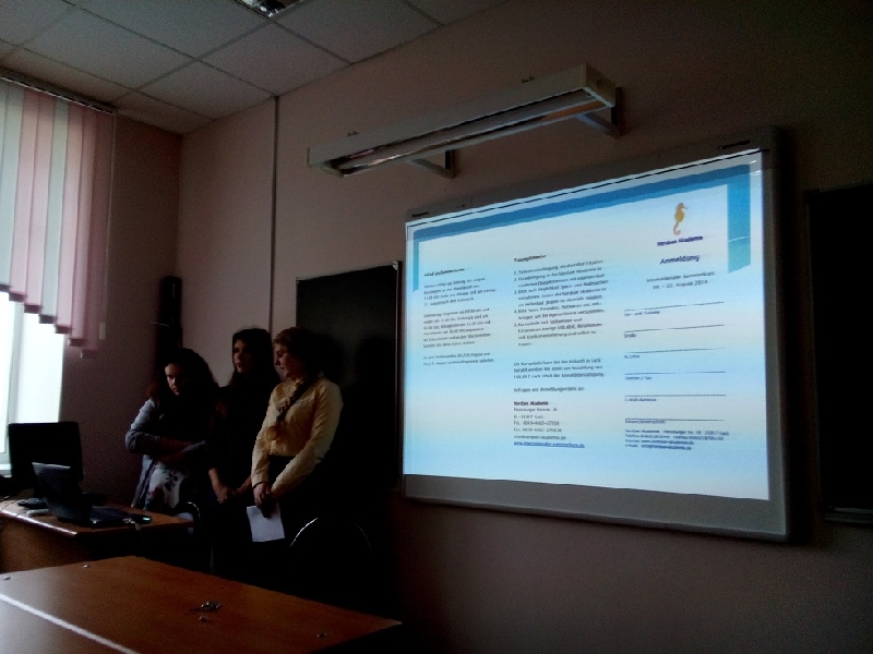 2 ноября 2015 года кураторы Воеводина И.В., Кучерова Л.Н., Шурыгина Ю.А. совместно со студенческими группами (14 ИПС-1, 13 ИПН-1, 12 ИПН-1) провели открытый кураторский час на тему «Академическая мобильность современного студента». На мероприятие были приглашены все желающие. Однако целевую аудиторию составили студенты вторых и третьих курсов ИФФ. Безрукавникова Алина, Решетенко Елена, Желтенкова Татьяна, Вебер Лилия и Попова Анна подготовили доклады и яркие презентации, в которых они поделилась своим опытом обучения в немецкоговорящих странах, рассказали о возможностях академической мобильности, своих достижениях, эмоциях, а также некоторых возможных трудностях. Кураторский час прошел в очень дружественной атмосфере, студенты задавали многочисленные вопросы и получали конкретные ответы, что особенно важно для тех обучающихся, которые планируют участвовать в программах по академической мобильности в текущем и следующем учебном году. Преподаватели кафедры «ИЯиМПИЯ» выражают благодарность выступившим референтам и желает им новых и интересных «академических проектов».