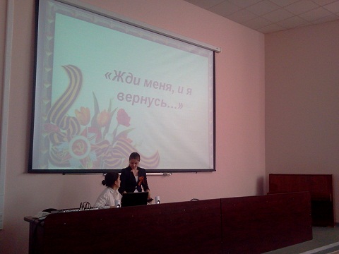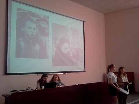 11 мая студенты групп 15 ИПА1, 2,3 под руководством преподавателя кафедры "Иностранные языки и методика преподавания иностранных языков" Разумовой М.В. подготовили проекты, посвящённые Великой Отечественной Войне. Студенты читали стихи, разыгрывали небольшие сценки. Например, группа 15 ИПА 1 (1) рассказала об истории написания известного стихотворения Константина Симонова "Жди меня, и я вернусь...". Группа 15 ИПА 1(2) подготовила проект на английском языке об участи женщин и детей на войне. Студенты группы 15 ИПА 2(3) рассказали о группе в Контакте "Полевая почта", где молодые люди делятся воспоминаниями своих бабушек и дедушек о войне. Студенты из Туркменистана подготовили презентацию о том, как их страна участвовала в Великой Отечественной Войне, а также рассказали о национальных героях Туркменистана.