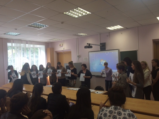 8 сентября 2016 г. студенты 1 курса гр. 16ИПА1-2, 16ИПС1 приняли участие в мастер-классе «Я – учитель иностранного языка», подготовленным руководителем направления «Иностранные языки» Борисовым А.В., зав. кафедрой «Иностранные языки и методика преподавания иностранных языков» Алёшиной Е.Ю., доцентом Шурыгиной Ю.А. Студенты получили возможность узнать интересные сведения из истории становления кафедры, её традициях и направлениях деятельности, получили важную информацию об организации процесса обучения в вузе. Погружению в профессию также способствовал просмотр инсценировки произведения с педагогической тематикой «Цифры» И.А. Бунина, подготовленной студентами гр. 13ИПН1 вместе с куратором Шурыгиной Ю.А. Мероприятие сопровождали интересные игры.