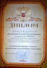 05.05.2016 20:32 Студент историко-филологического факультета и преподаватель кафедры «ИЯиМПИЯ» награждены дипломами